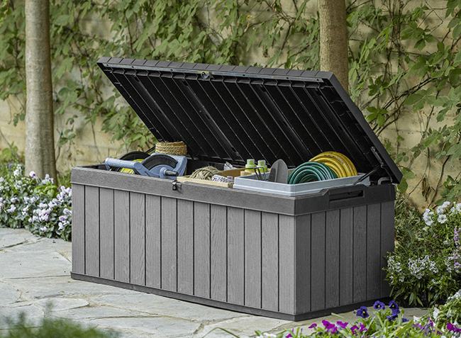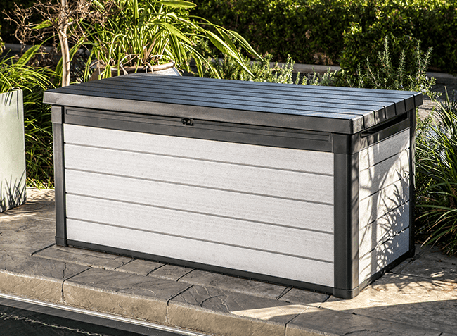 Und das wird unterstützt durch zeitloses Design, Farben die keinem Trend folgen, sondern ganz natürlich und mühelos in jeden Haushalt passen. Dass alle unsere Auflagenboxen, Gartenschränke, Mülltonnenaufbewahrungen, Sitzgruppen und Lounge-Sets zusätzlich spielend leicht zu pflegen sind und jedem Wetter standhalten, ist eine Eigenschaft, die dem Thema Nachhaltigkeit das Sahnehäubchen aufsetzt – erschwinglicher Komfort, der einfach unkompliziert ist und unsere Umwelt ein kleines bisschen entlastet.